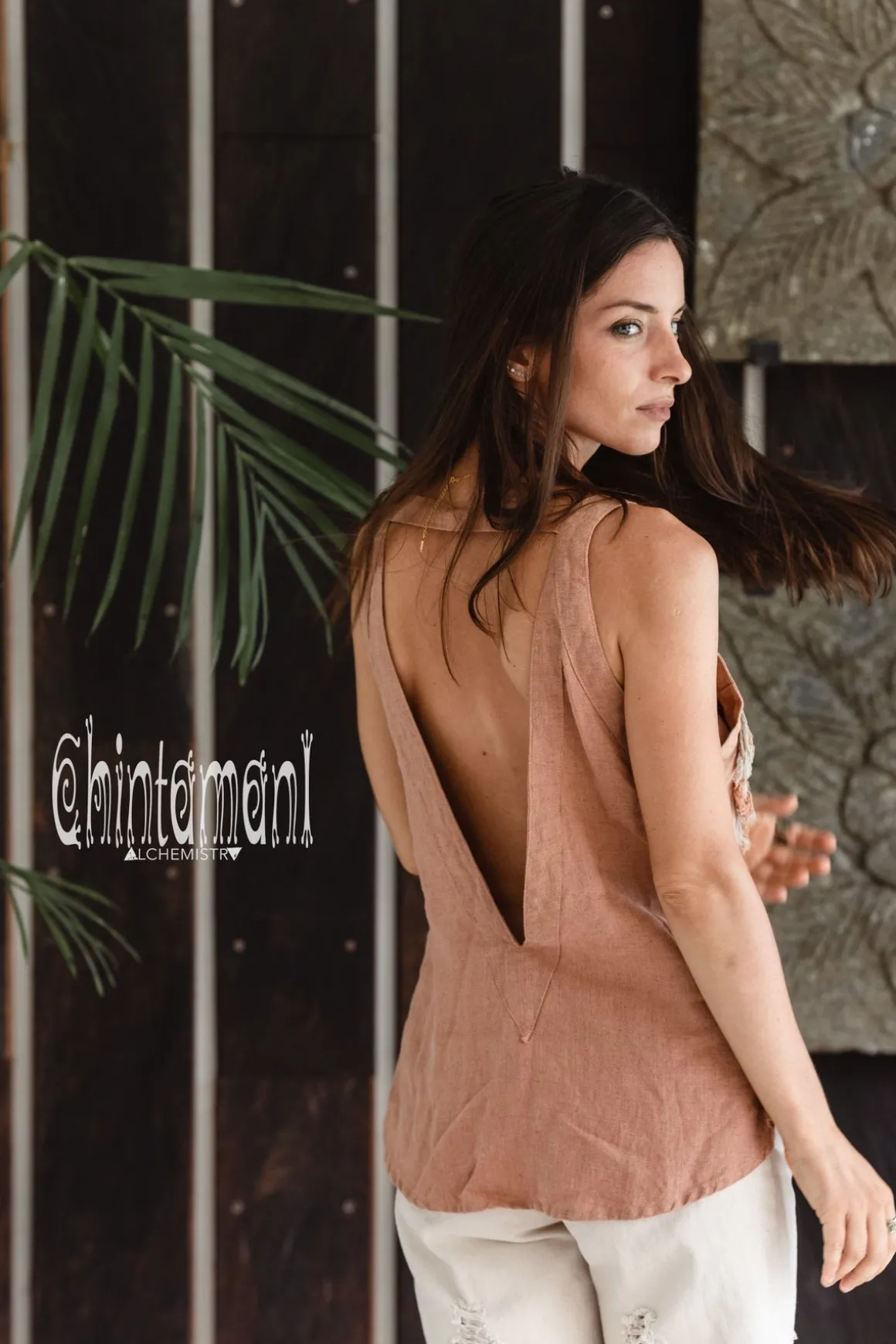 Dusty Pink Linen Open Back Boho Top