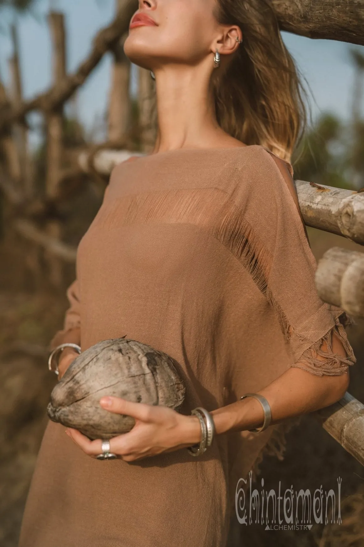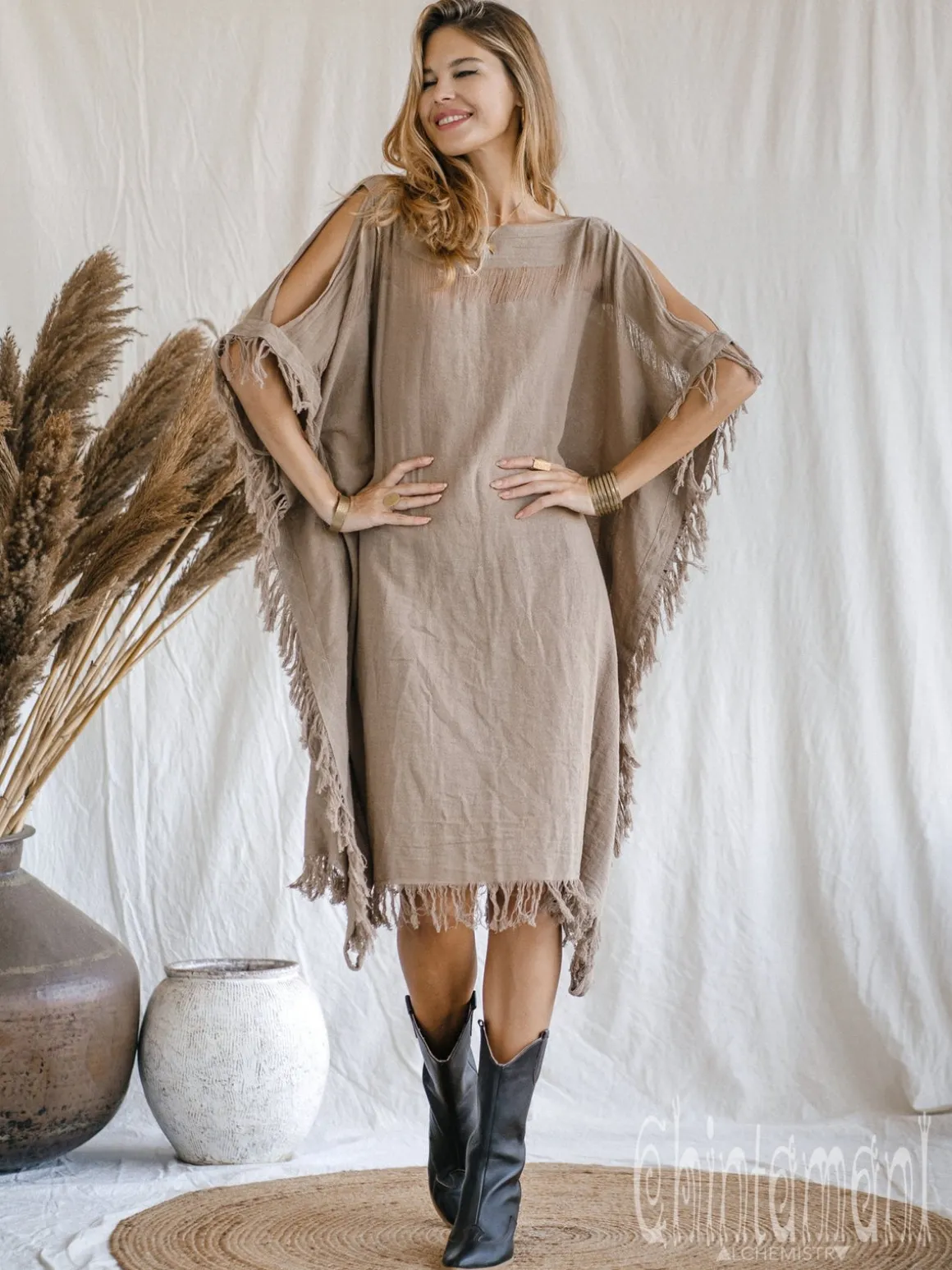 This beach dress, also known as a Poncho dress, is the epitome of effortless chic for your seaside adventures. Made from a lightweight, slightly sheer fabric, it is perfect for lounging by the shore or dancing at a music festival like Burning Man. The flowy silhouette and breezy feel of the dress make it ideal for hot summer days, allowing you to stay cool and stylish at the same time. With its relaxed fit and beachy vibes, this Poncho dress is a must-have for any beach getaway or festival outing.