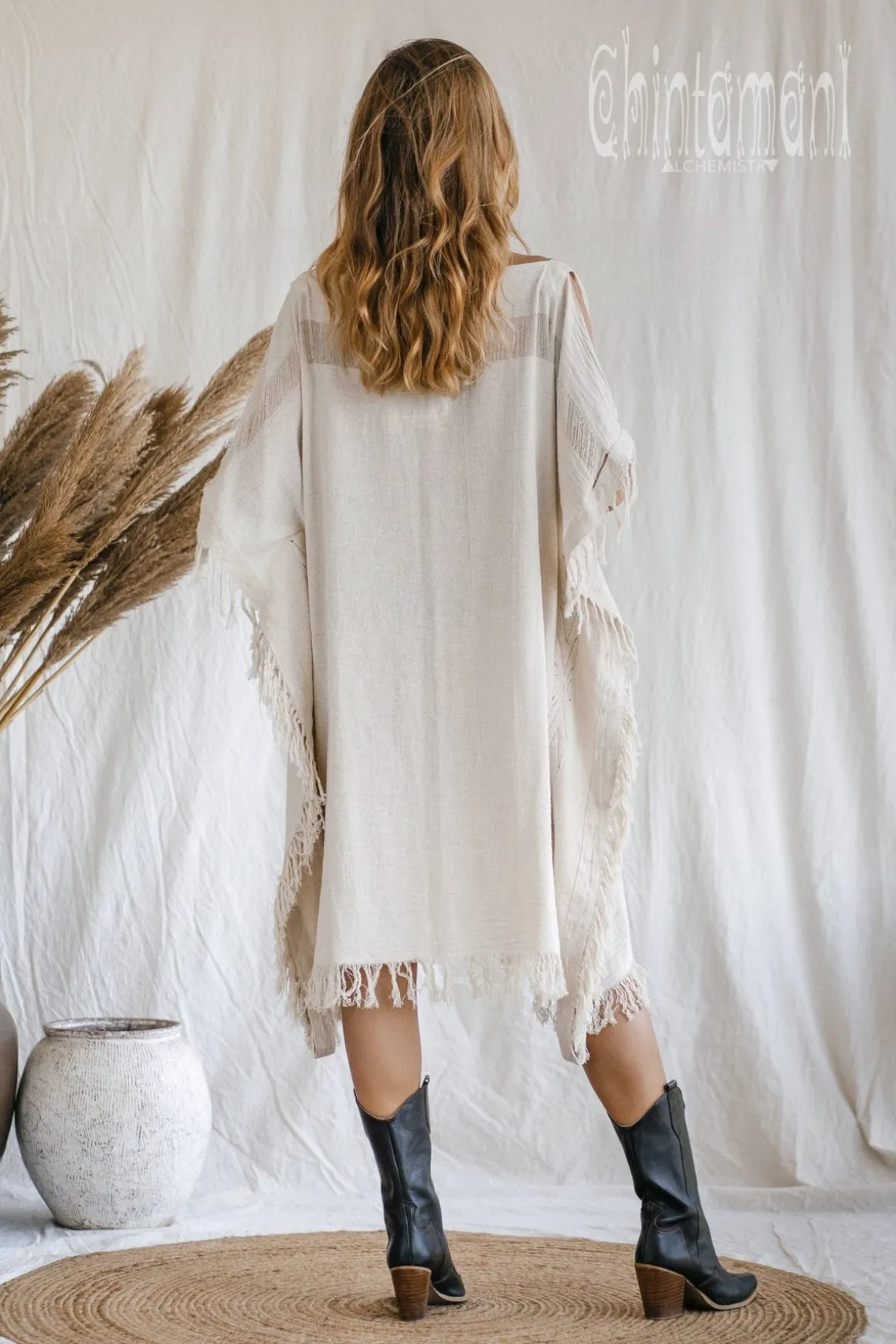 This beach dress, also known as a Poncho dress, is the epitome of effortless chic for your seaside adventures. Made from a lightweight, slightly sheer fabric, it is perfect for lounging by the shore or dancing at a music festival like Burning Man. The flowy silhouette and breezy feel of the dress make it ideal for hot summer days, allowing you to stay cool and stylish at the same time. With its relaxed fit and beachy vibes, this Poncho dress is a must-have for any beach getaway or festival outing.
