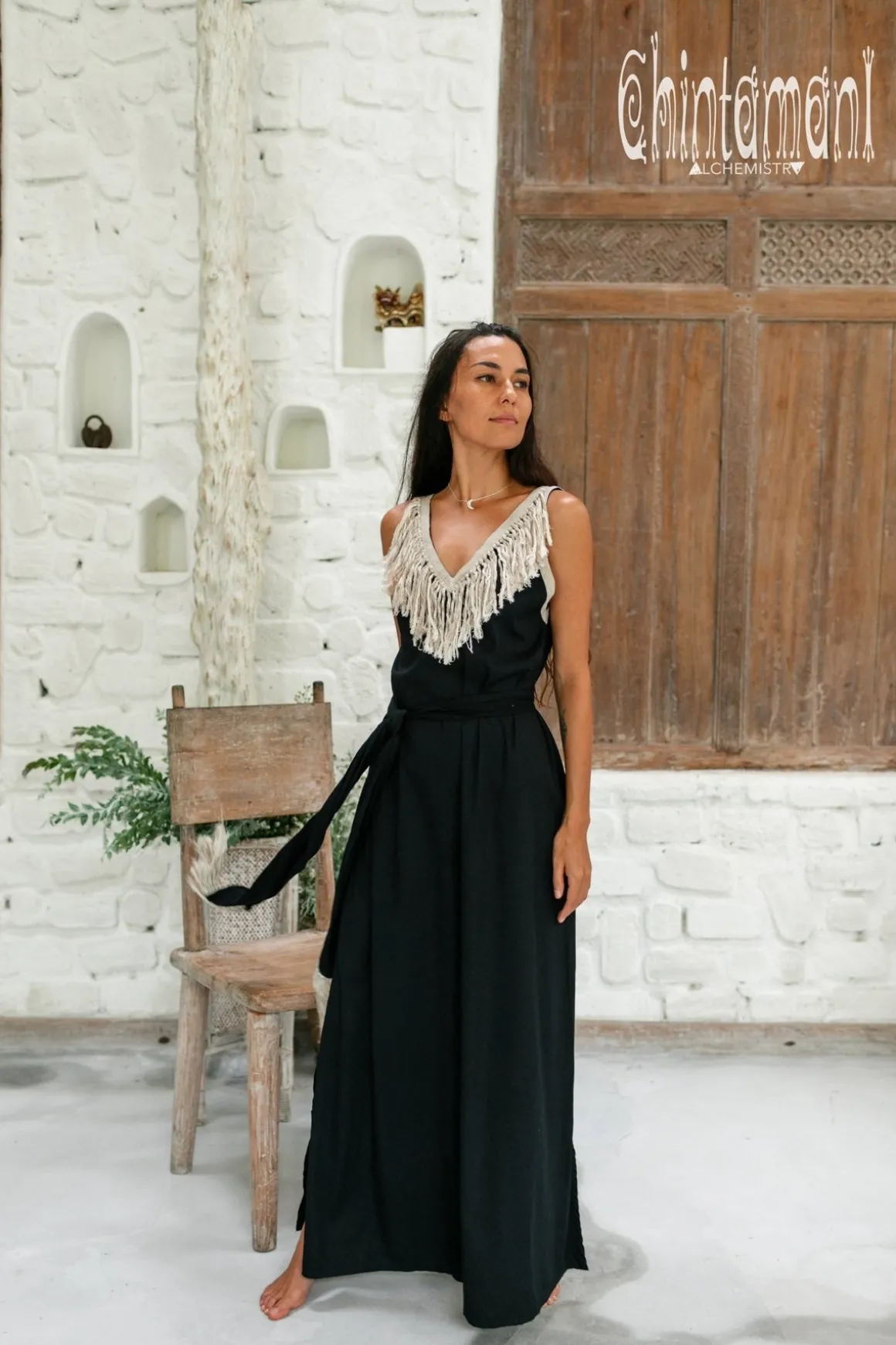 Long Cotton Dress is a divine artefact from our new collection. The silhouette is floaty and simple, with two slits on the sides – so that the dress looks very classy and elegant. Fringe decoration on the v-neck and amazing long belt with fringes adds original boho chic accent, that we love so much. Soft natural Cotton fabric is very airy and moves around your body amazingly, when you walk or dance in this dress. Just a perfect goddess wear, that reminds of sunny ancient Greece and the Youth of this world.