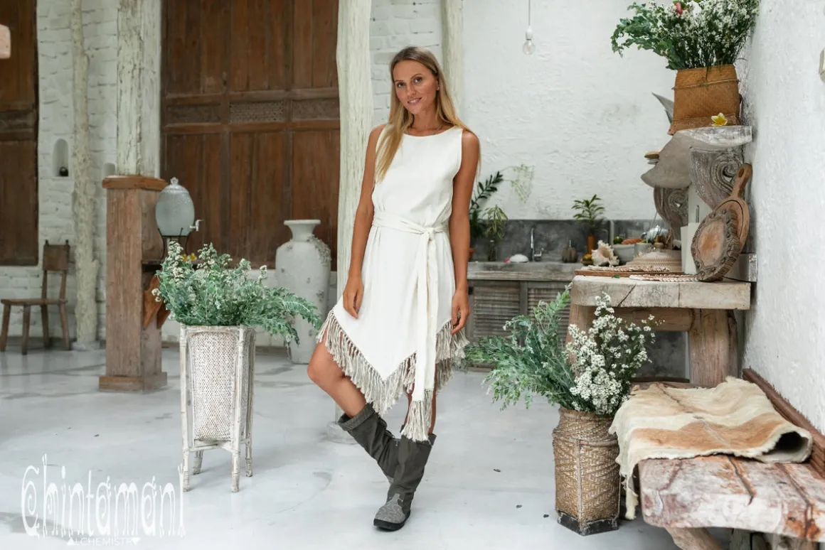 Off White Fringe Boho Dress.