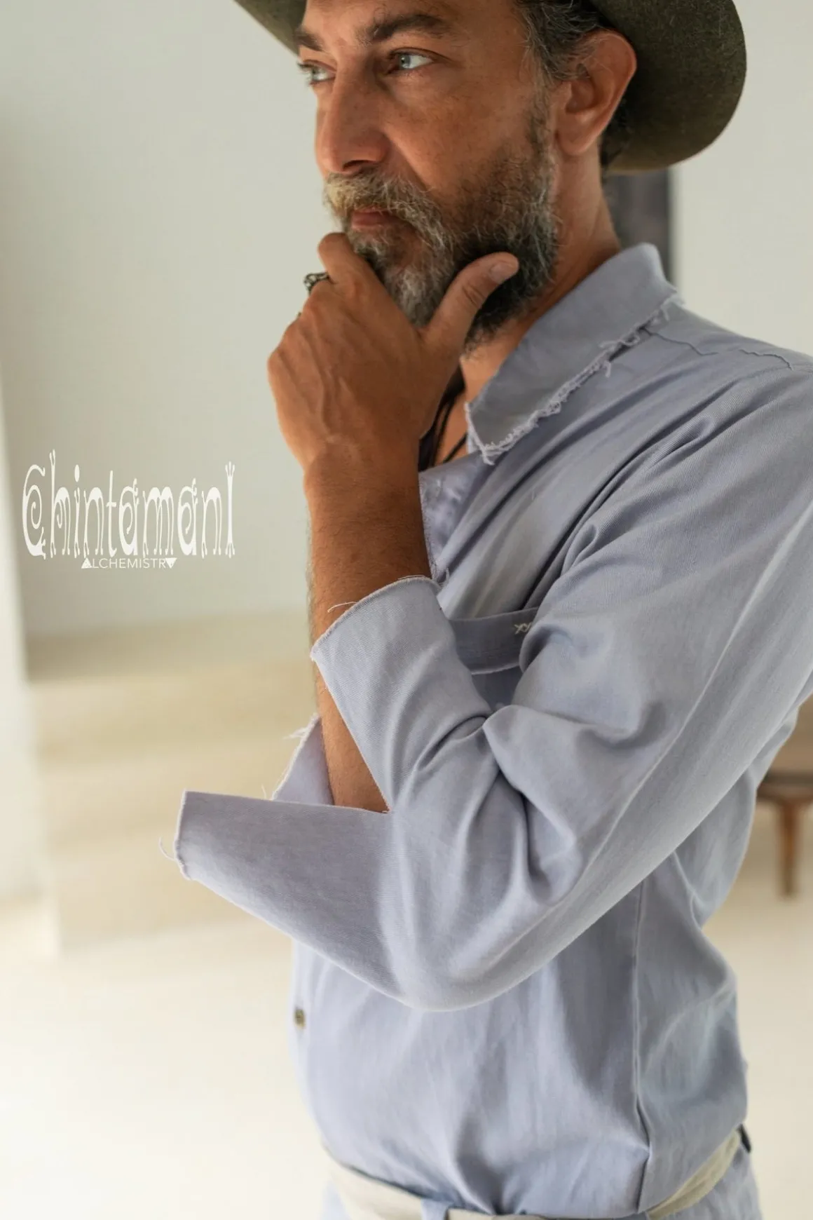 This is a fashion statement we were working on for years. Our elegant and cozy boiler suit for men with the perfect silhouette is finally here! 3/4 sleeves with raw cuff line are nice and easy during summer, and will also fit people with long arms. Full length trousers, narrow at the bottom, create a casual feeling to the piece. This amazing romper is made of 100% natural cotton twill fabric, which is strong and breathable, so you can easily wear it without any underwear. It combines nicely with boots or just flip flops to feel just right even in the heat. This model comes in light blue color and can be shaped by light gray linen belt. Just throw this one on – and you are dressed for the whole summer!