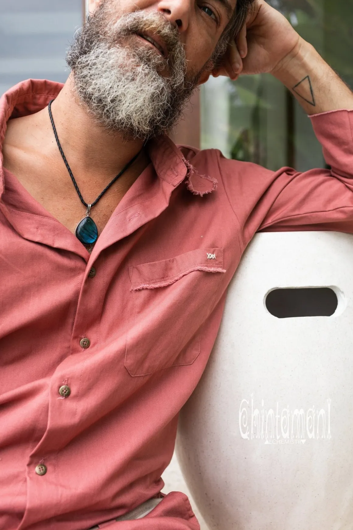 Cotton Twill – is a natural strong eco friendly material. 100% natural and super durable, it does not wrinkle or stretch. It is same type as denim, only a bit lighter and softer – perfect for men’s pants or jackets. Twill has a natural capasity to not show dirt and is very easy to clean in the washing machine. Sometimes it is used to make work clothes. So it will last for years! It is a perfect substitute for leather or synthetic alternatives. We are using for this clothing line 100% cotton made on small factories in Indonesia. Yes, we are aiming to be as conscious of preserving Nature resources, as possible.