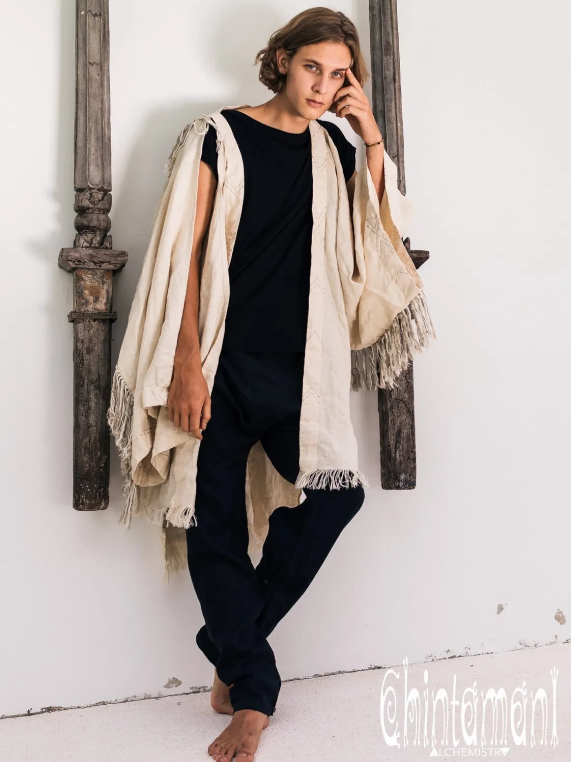 Fringe Linen Kimono / Off White Cream