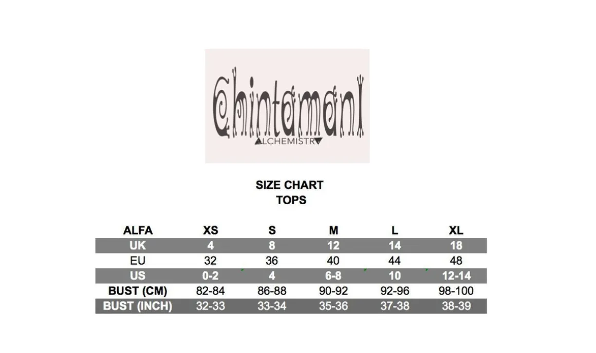 All Chintamani Items are made by small home factories in India and Indonesia. We care about every piece quality and intend to make our clothes special, reflecting authentic tribal vibes in a gentle classy way.