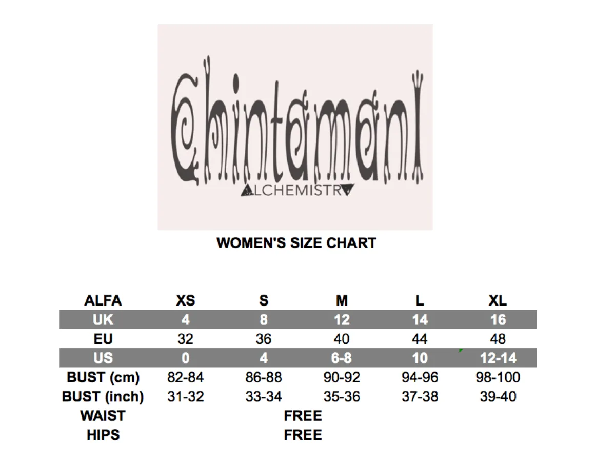 All Chintamani Items are made by small home factories in India and Indonesia. We care about every piece quality and intend to make our clothes special, reflecting authentic tribal vibes in a gentle classy way.