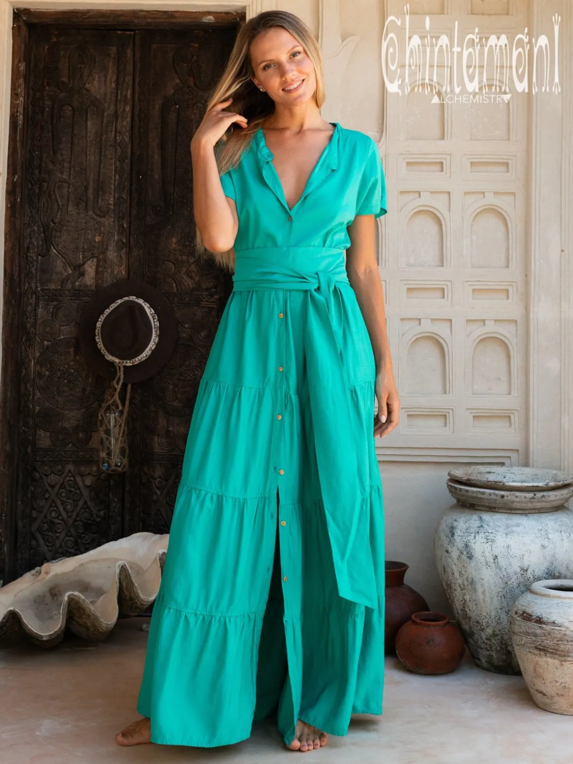 Cotton Tiered Long Shirt dress is elegantly simple, perfect cut piece, that you were craving for a hot summer. Soft Cotton fabric, that gently caress your skin and floats down so regally, not too tight feminine silhouette, front buttons, that make it so easy for this dress to slip down, when you are up for a swim! There is a belt, that you can use to accent the waist, or just wear this dress open, as a gorgeous bohemian cardigan. It is so perfect and elegant, you can use it as a base for layered boho outfit, or compliment it with couple of ethnic accessories and high hills to go out for a dinner. We bet it is going to be your favorite dress this summer, so might as well order two in different colors. Also, there is a shorter, more playful version of this dress available!