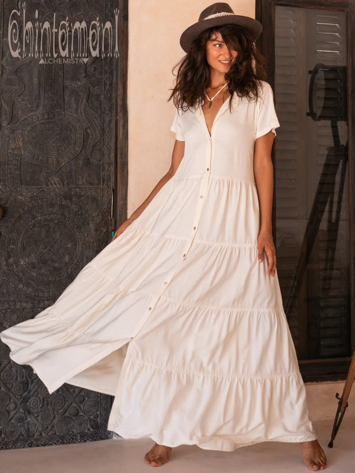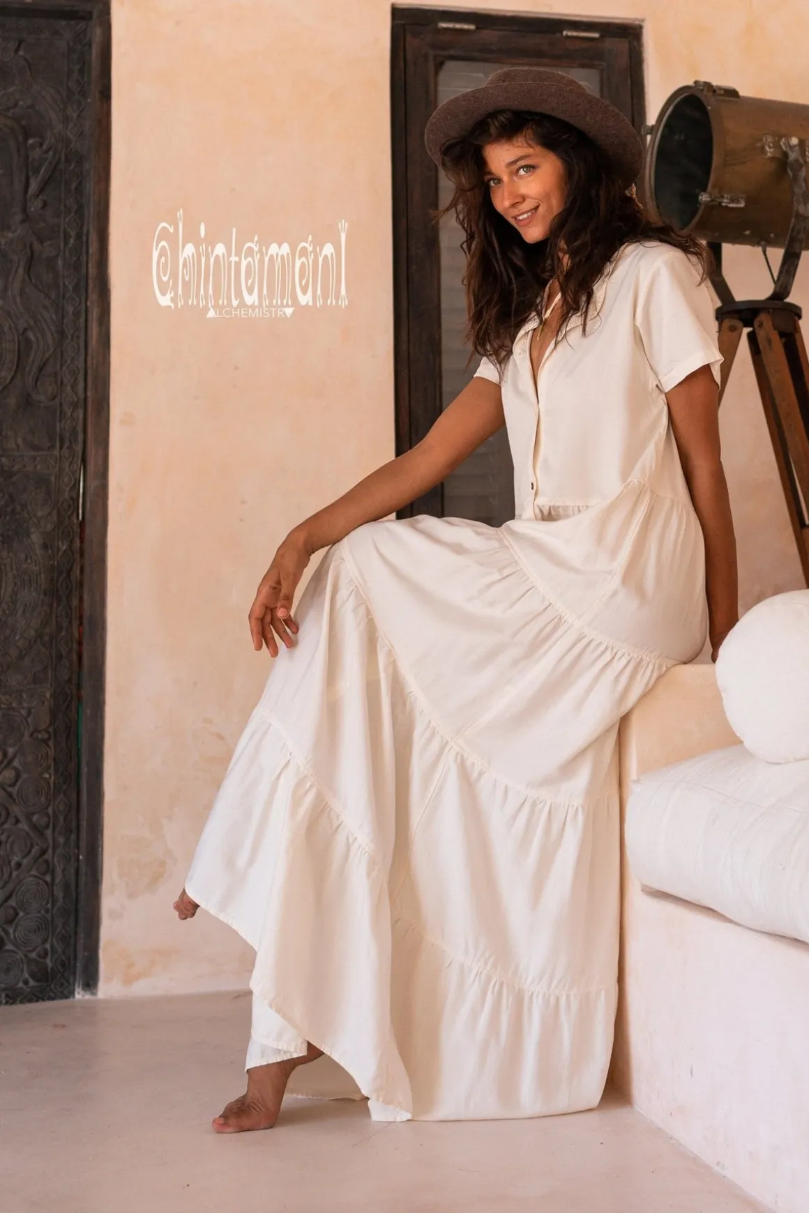 Cotton Tiered Long Shirt dress is elegantly simple, perfect cut piece, that you were craving for a hot summer. Soft Cotton fabric, that gently caress your skin and floats down so regally, not too tight feminine silhouette, front buttons, that make it so easy for this dress to slip down, when you are up for a swim! There is a belt, that you can use to accent the waist, or just wear this dress open, as a gorgeous bohemian cardigan. It is so perfect and elegant, you can use it as a base for layered boho outfit, or compliment it with couple of ethnic accessories and high hills to go out for a dinner. We bet it is going to be your favorite dress this summer, so might as well order two in different colors. Also, there is a shorter, more playful version of this dress available!