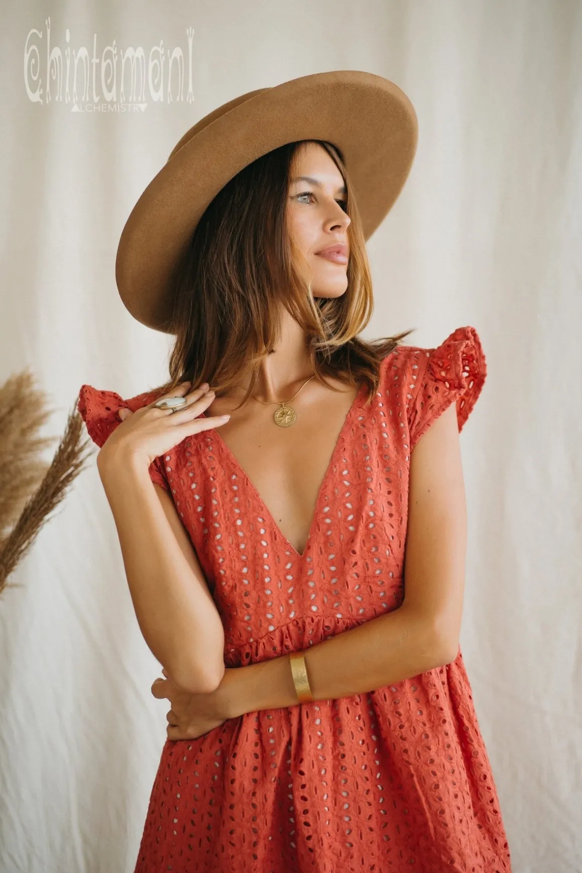 Simply cute – that’s what we can say about this baby doll dress from our broderie anglaise collection. It is made from pure organic cotton with eyelets – traditional European embroidery technique. Broderie anglaise was very popular in Victorian Britain and now makes a gorgeous comeback as a base for romantic dresses. This one is so light and airy, but has a very sophisticated tailored silhouette – with gathered skirt, soft and thin off white cotton underskirt, ruffled short sleeves and an open back with cute shoulder straps. Finish this look with boots and straw hat – and you are ready for a bright morning through French countryside somewhere in Provence!