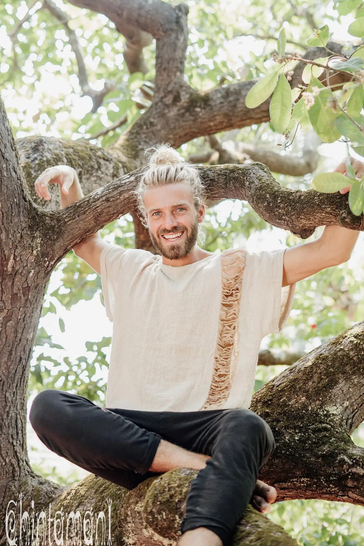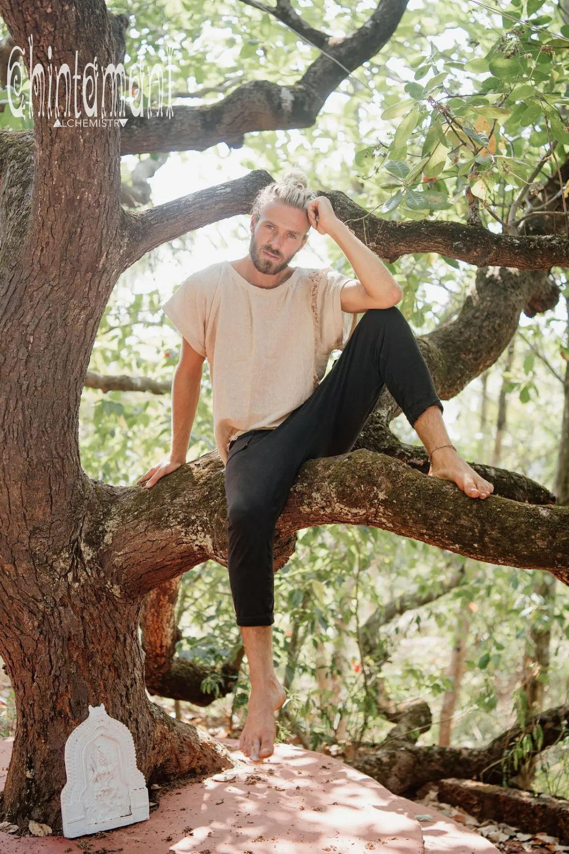 Raw Hand Woven Cotton – is a natural soft eco friendly material. It is a perfect substitute for leather or synthetic alternatives. We are using for this clothing line 100% raw cotton made on small factories in India. Yes, we are aiming to be as conscious of preserving Nature resources, as possible.
