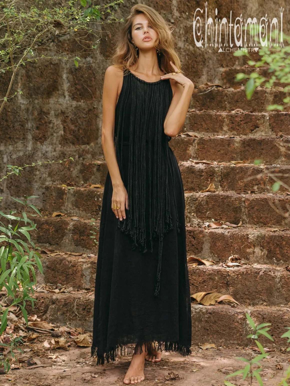 Chintamani is creating this fringe rope dress in 4 colors: off white, black, brown and red ochre.