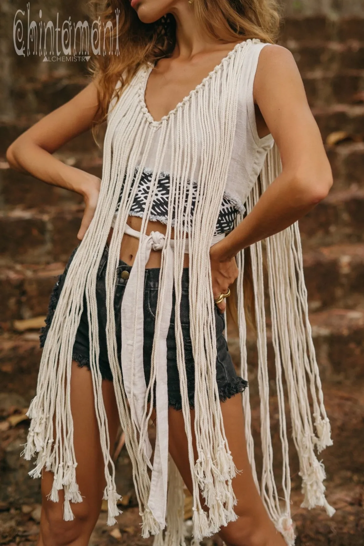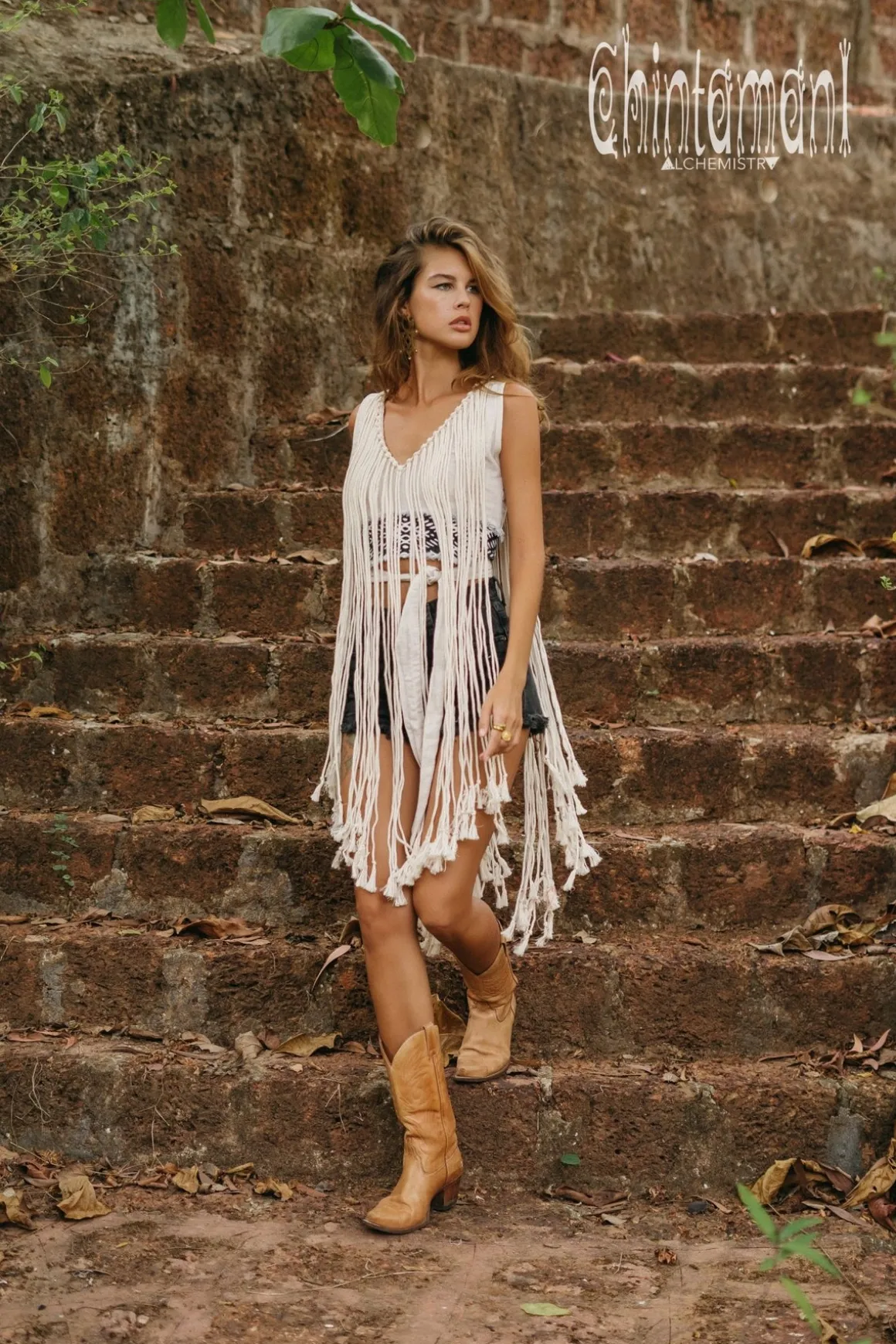 Chintamani creates this organic fringe top also in black and salmon colors.