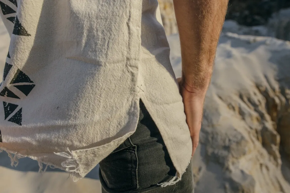 Raw Hand Woven Cotton – is a natural soft eco friendly material. It is a perfect substitute for leather or synthetic alternatives. We are using for this clothing line 100% raw cotton made on small factories in Indonesia. Yes, we are aiming to be as conscious of preserving Nature resources, as possible.