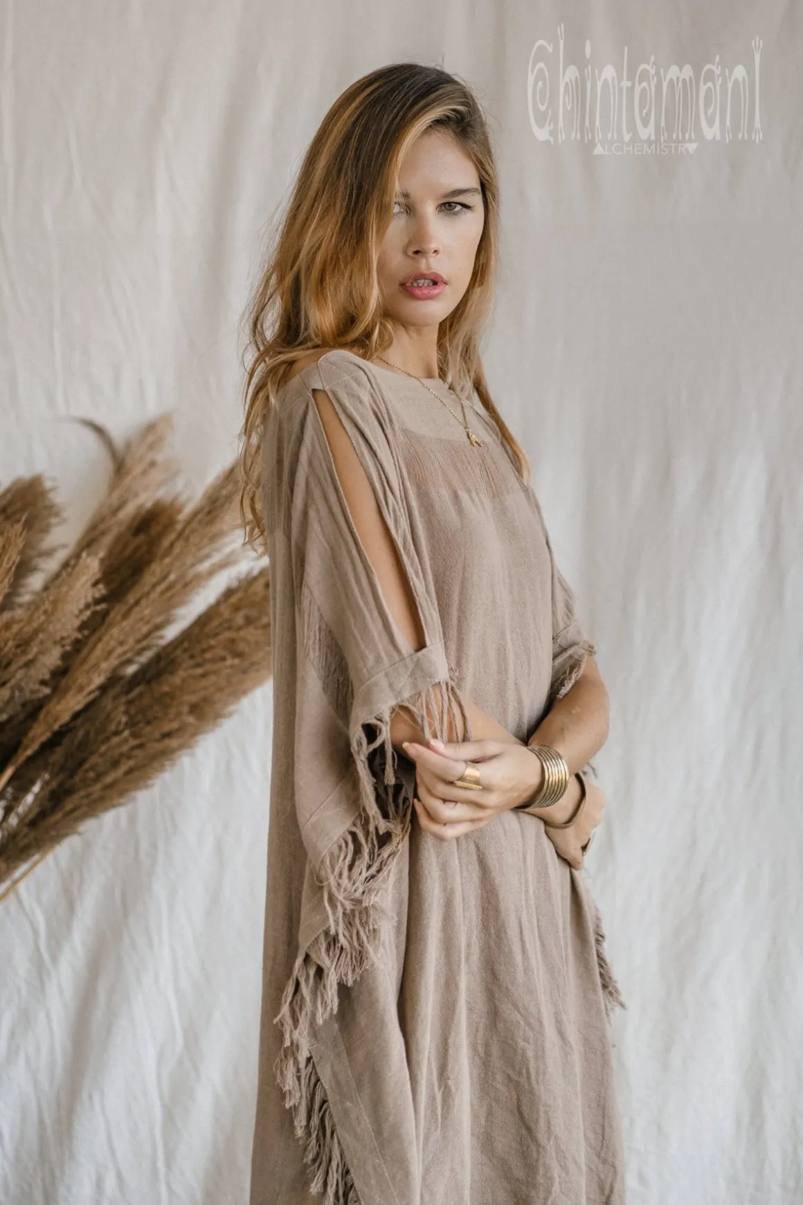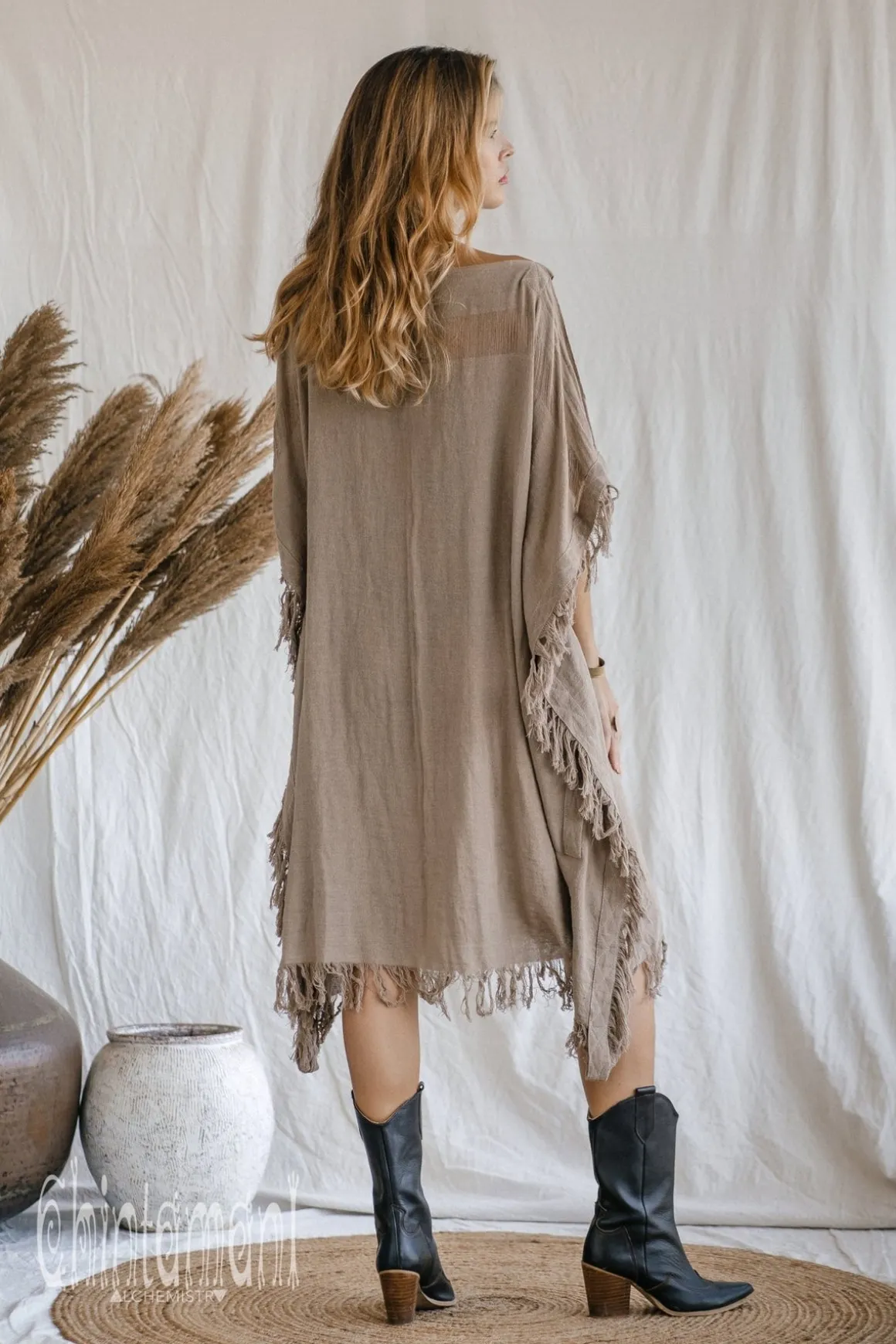 This beach dress, also known as a Poncho dress, is the epitome of effortless chic for your seaside adventures. Made from a lightweight, slightly sheer fabric, it is perfect for lounging by the shore or dancing at a music festival like Burning Man. The flowy silhouette and breezy feel of the dress make it ideal for hot summer days, allowing you to stay cool and stylish at the same time. With its relaxed fit and beachy vibes, this Poncho dress is a must-have for any beach getaway or festival outing.