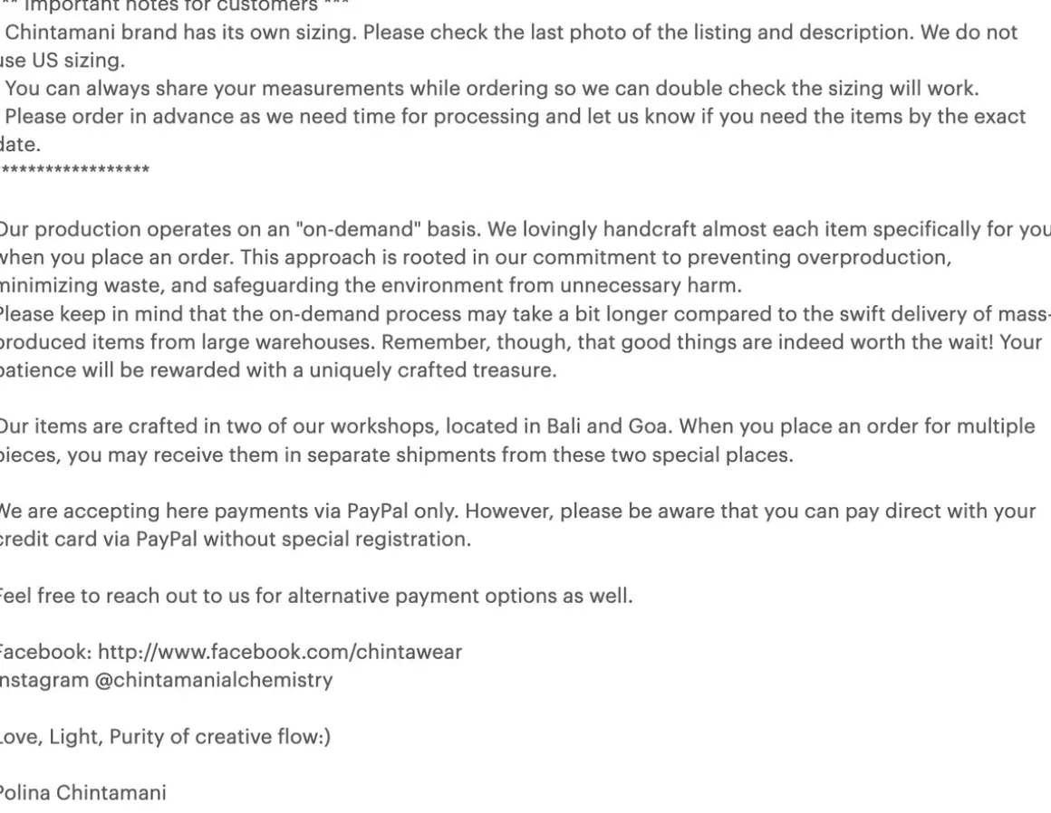 All Chintamani Items are made by small home factories in India and Indonesia. We care about every piece quality and intend to make our clothes special, reflecting authentic tribal vibes in a gentle classy way.