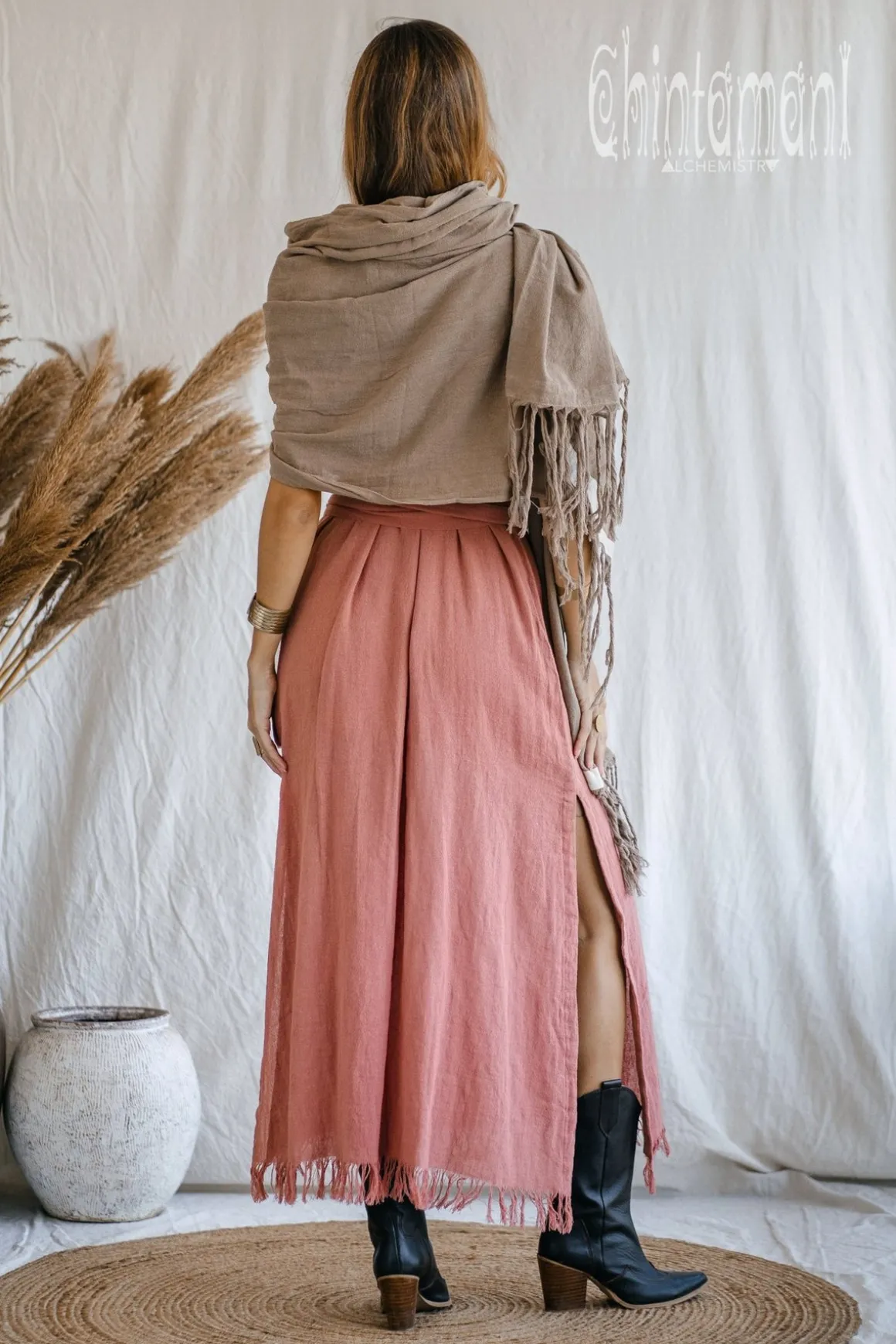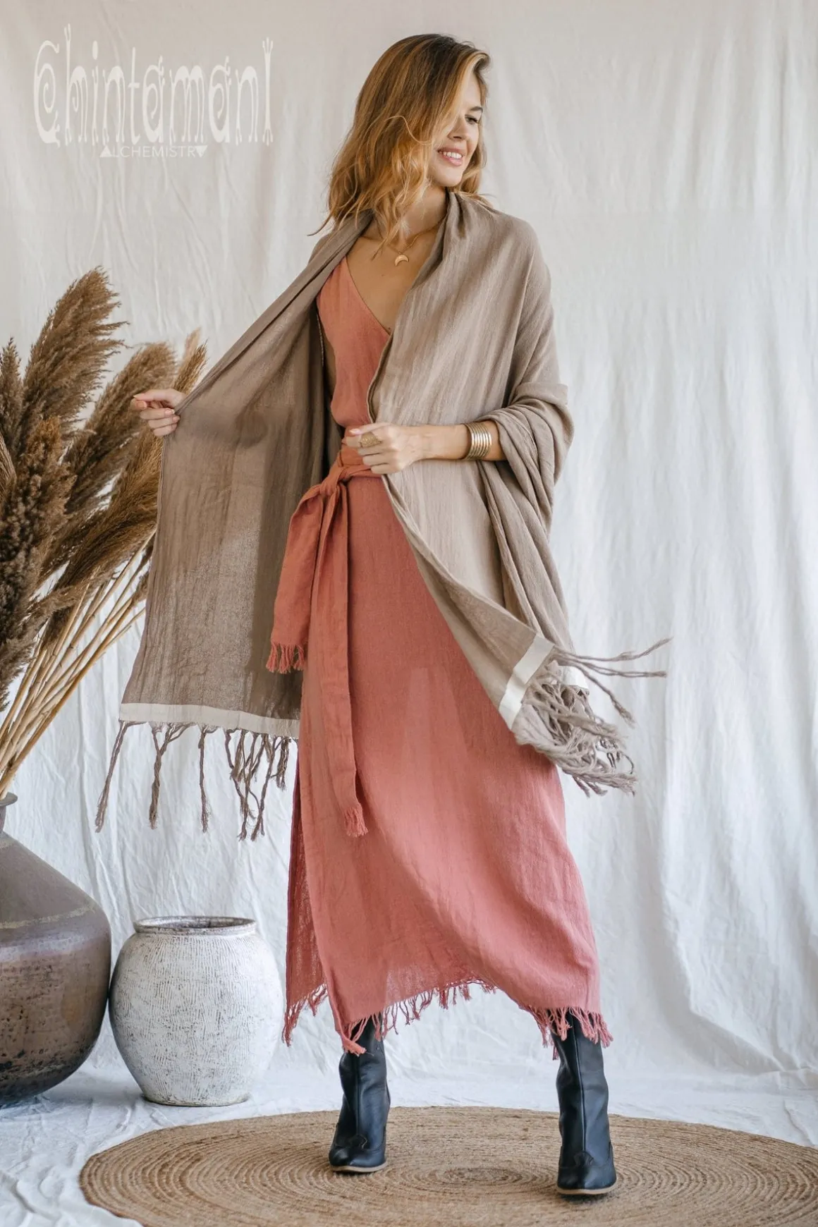 Stately gorgeous Huge Boho Shawl with fringes is a versatile creation of Chintamani Alchemistry, that can serve you so many ways in your travels and at home. Its remarkable size (1 by 2 meter of pure handwoven raw cotton) makes for countless options. It can be a turban, a blanket, a wrap dress, a mantle, a beach sarong, an ultimate protection from sun and wind – natural cotton is a magic breathable material that can resist even desert heat. The item comes in two distinctive colors of our Raw cotton collection – off white and unbleached beige. Amazing decorative super long fringe will add boho chic detail to anything you create from our Shawl. Of course, it will look stunning just royally residing on your shoulders as well!