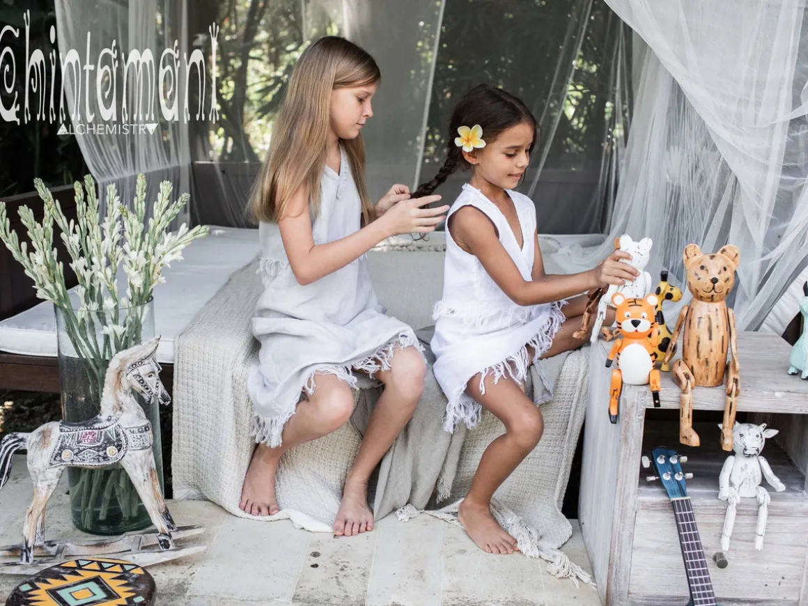Perfect composition to mother’s and daughter linen look. Chintamani kids dress made of softest linen. We were inspired to see how small woman loves them.