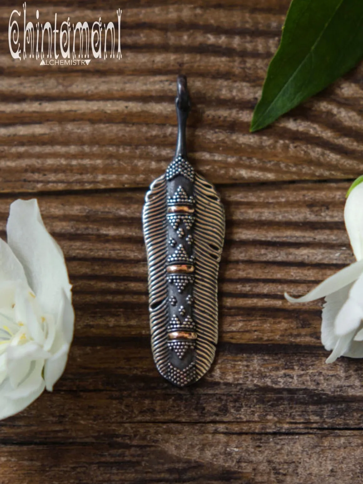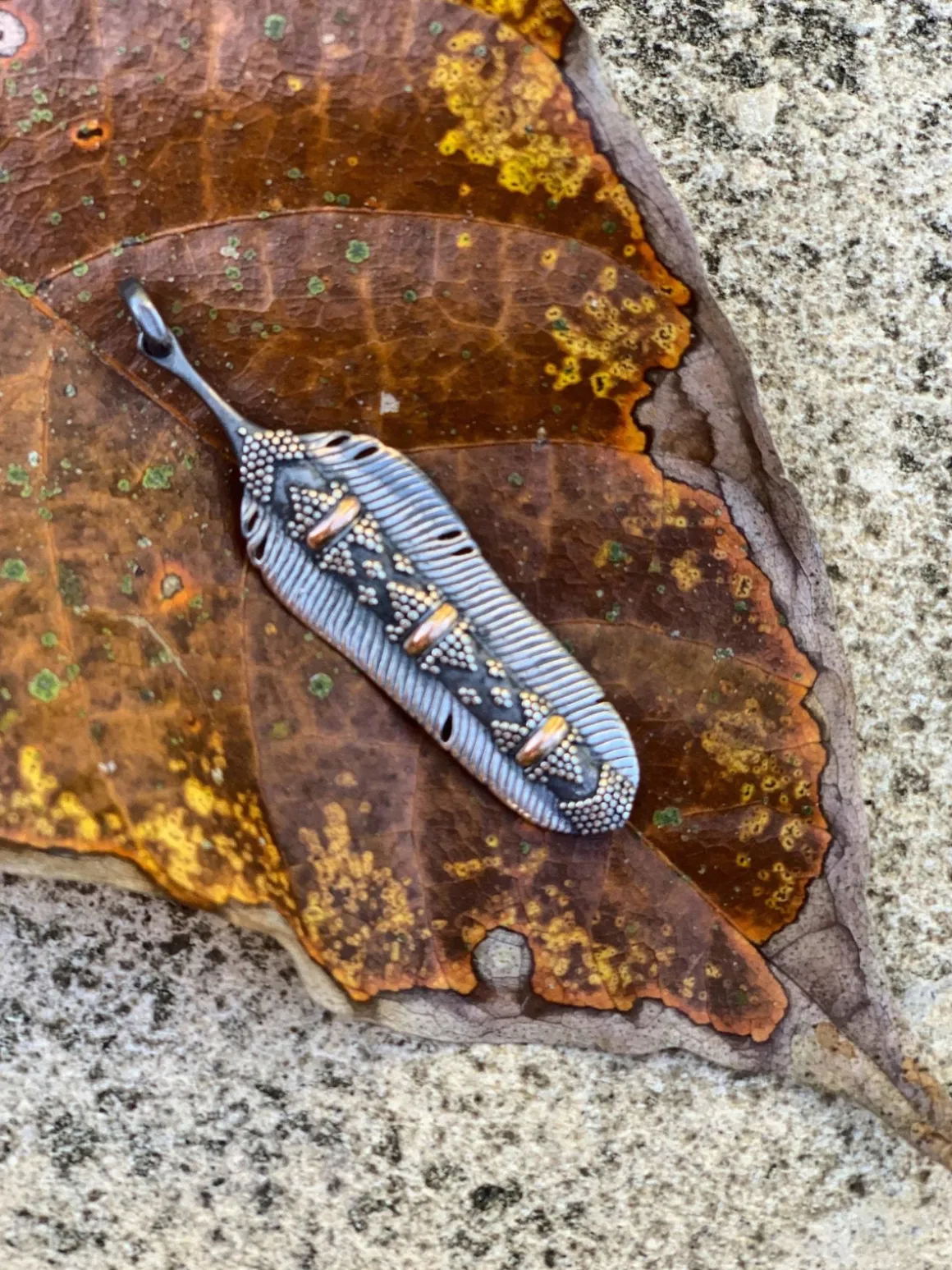Unique design feather pendant.