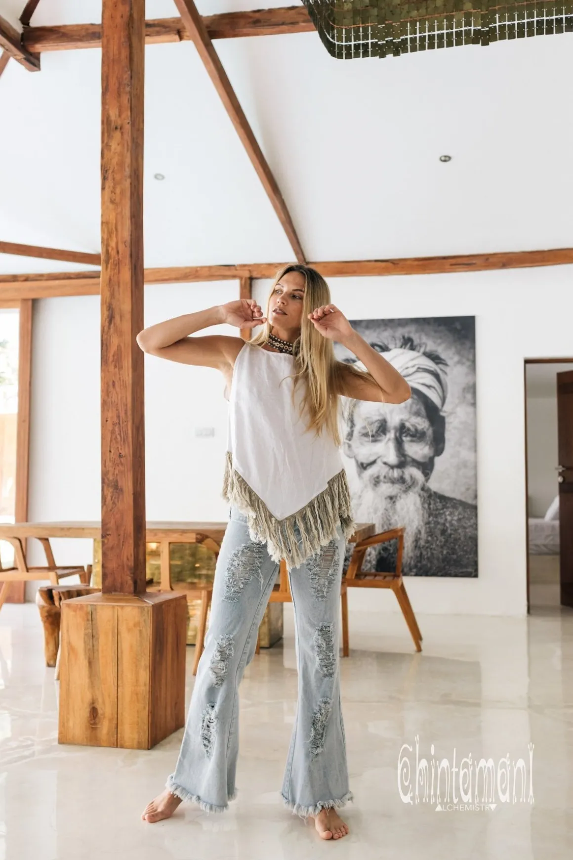Chintamani creates this fringe top in Black, Off White, Dusty Pink and Red Ochre colors.