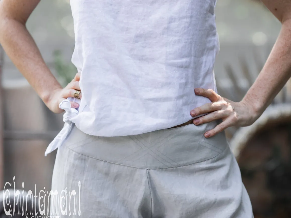 White Linen Top is a simple and gorgeous item, a combination of classy look, natural feel and ultimate comfort. It is made of pure linen, amazing material, that spoil your skin with its light airness. The unique design of this crop top is wonderfully versatile – you can wear it as a long loose tunic with asymmetric hemline, but then, using a slit on the side you can tie two edges and convert your top into waist length bodice. Noble dusty pink, silver grey or classic white and black color of Linen Tunic Top upgrades its minimalistic and rustic appearance to aristocratic simplicity. This top looks stunningly beautiful with our wide linen pants, and will create an artsy casual ensemble with our gypsy bohemian skirts and distressed jeans.
