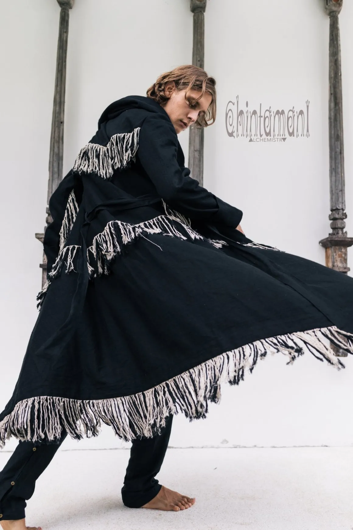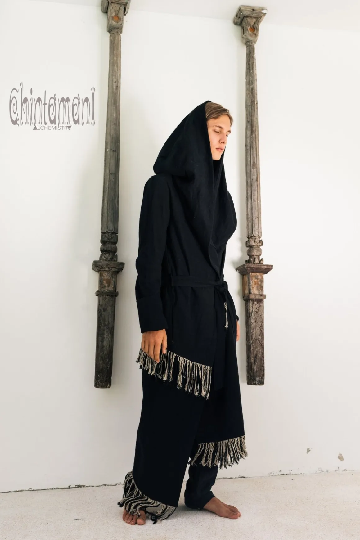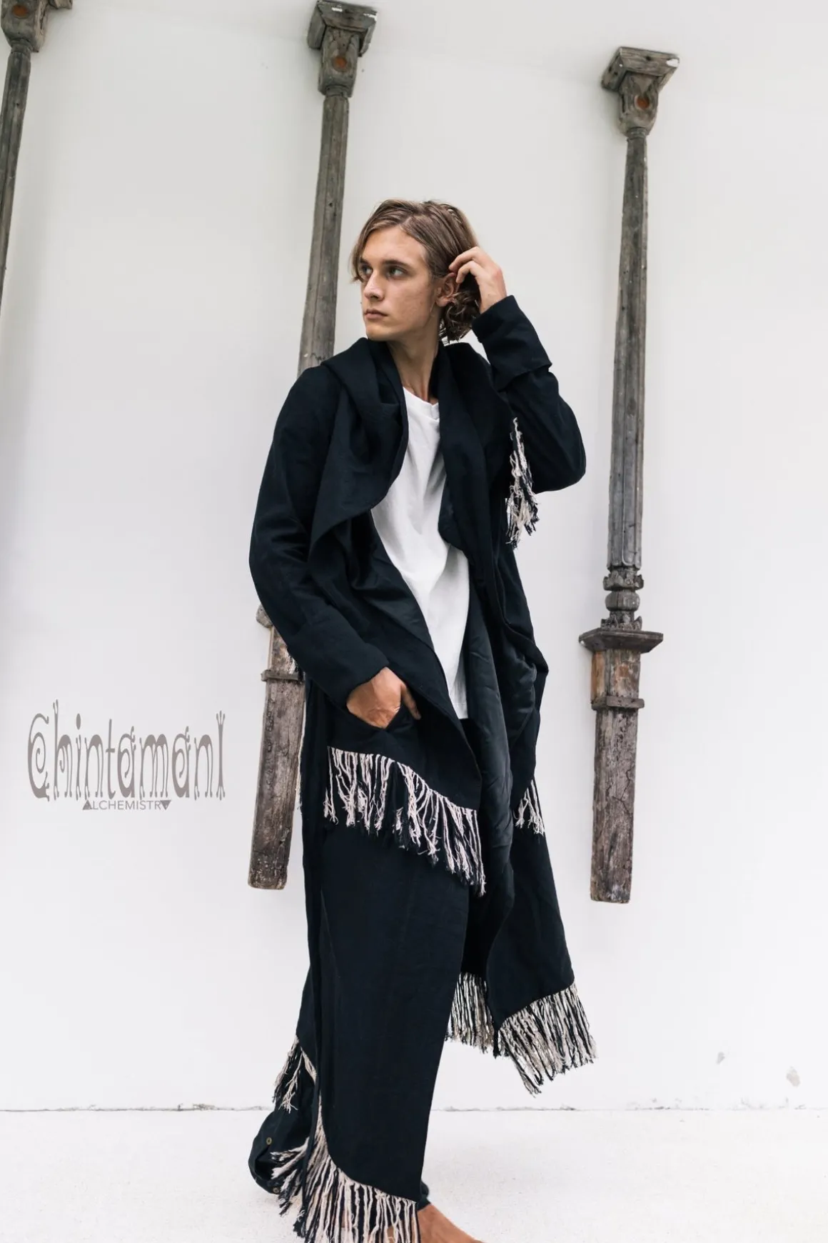 Long decorative fringes are handmade from 100% natural strong and thick linen, so that they are very durable and do not entangle after washing. The fringes usually come in a mix of two colors: one is the same tint as a garment it decorates, with the addition of raw unbleached silver-grey threads. It takes many hours to create this stunning decoration which makes each and every piece from our new collection a one of a kind artefact.