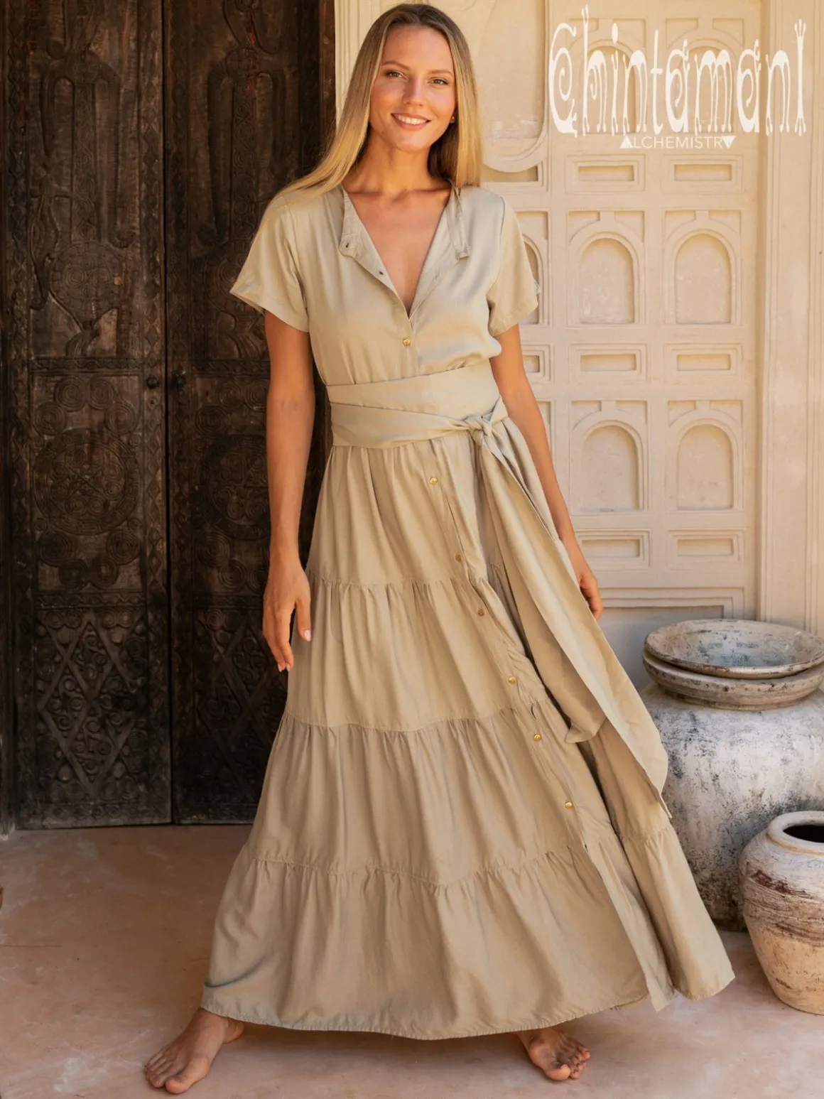 Cotton Tiered Long Shirt dress is elegantly simple, perfect cut piece, that you were craving for a hot summer. Soft Cotton fabric, that gently caress your skin and floats down so regally, not too tight feminine silhouette, front buttons, that make it so easy for this dress to slip down, when you are up for a swim! There is a belt, that you can use to accent the waist, or just wear this dress open, as a gorgeous bohemian cardigan. It is so perfect and elegant, you can use it as a base for layered boho outfit, or compliment it with couple of ethnic accessories and high hills to go out for a dinner. We bet it is going to be your favorite dress this summer, so might as well order two in different colors. Also, there is a shorter, more playful version of this dress available!