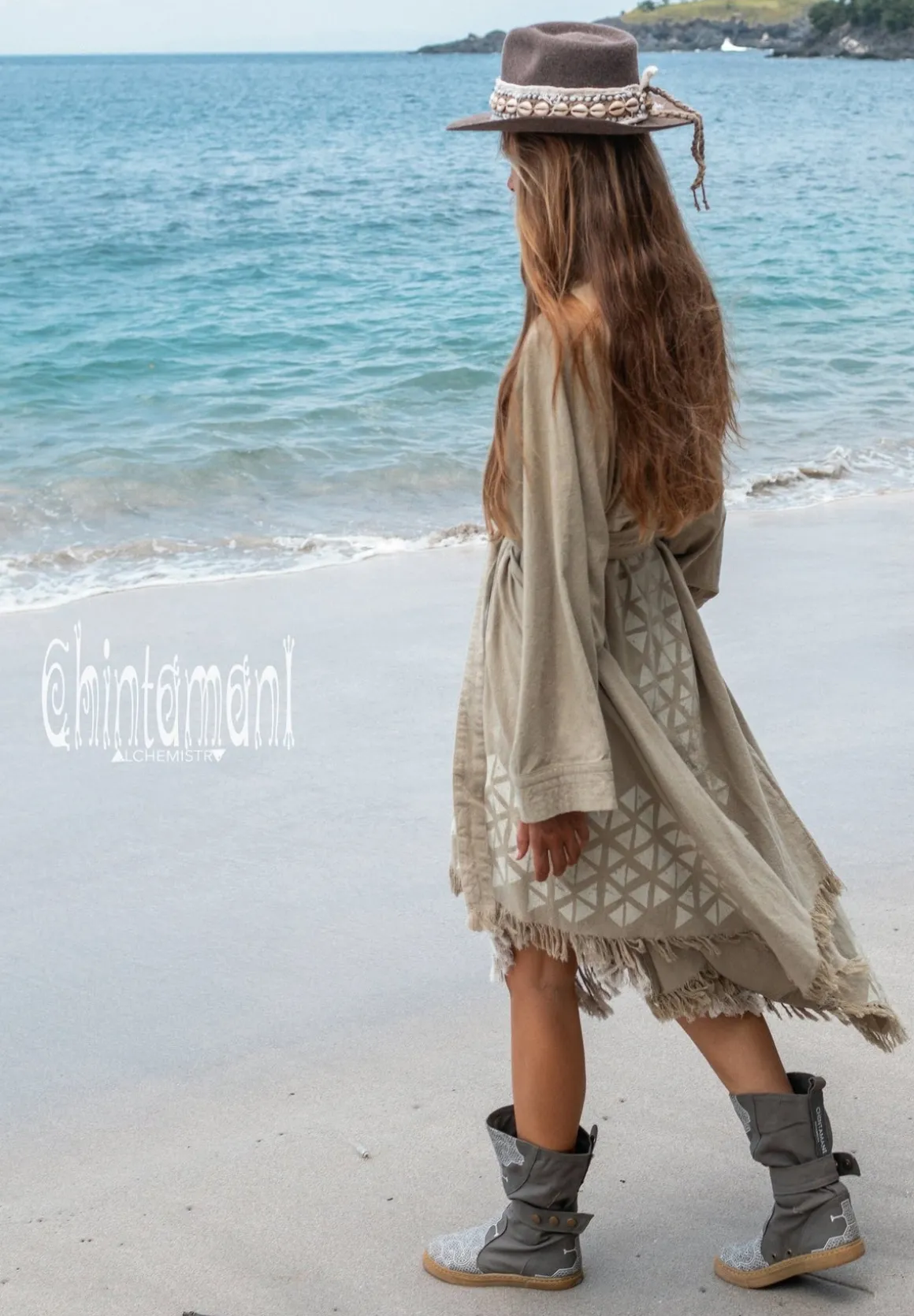 Full Vegan bohemian high shoes made of 100% cotton canvas. These elegant boots will suit a traveler, a dreamer or a city dweller, who likes natural feel and comfort. They complement any leg shape and can be worn either with pants, skirts or dresses. Wearing stunning Chintamani Alchemistry shoes, one doesn’t have to compromise between amazing boho chic look and ability to walk for miles and dance for hours. Flat, comfortable sole is stitched all around so it will last for years of continuous use. All our boots are decorated with sacred patterns. Two Solid Brass Chintamani feather pendants go together with each pair.