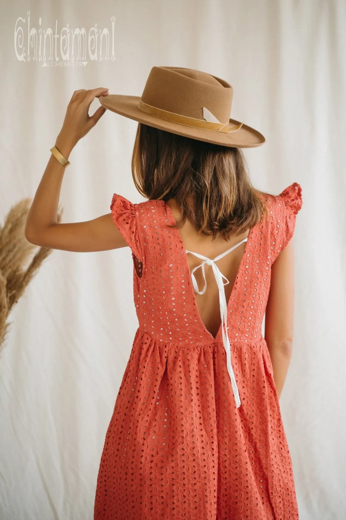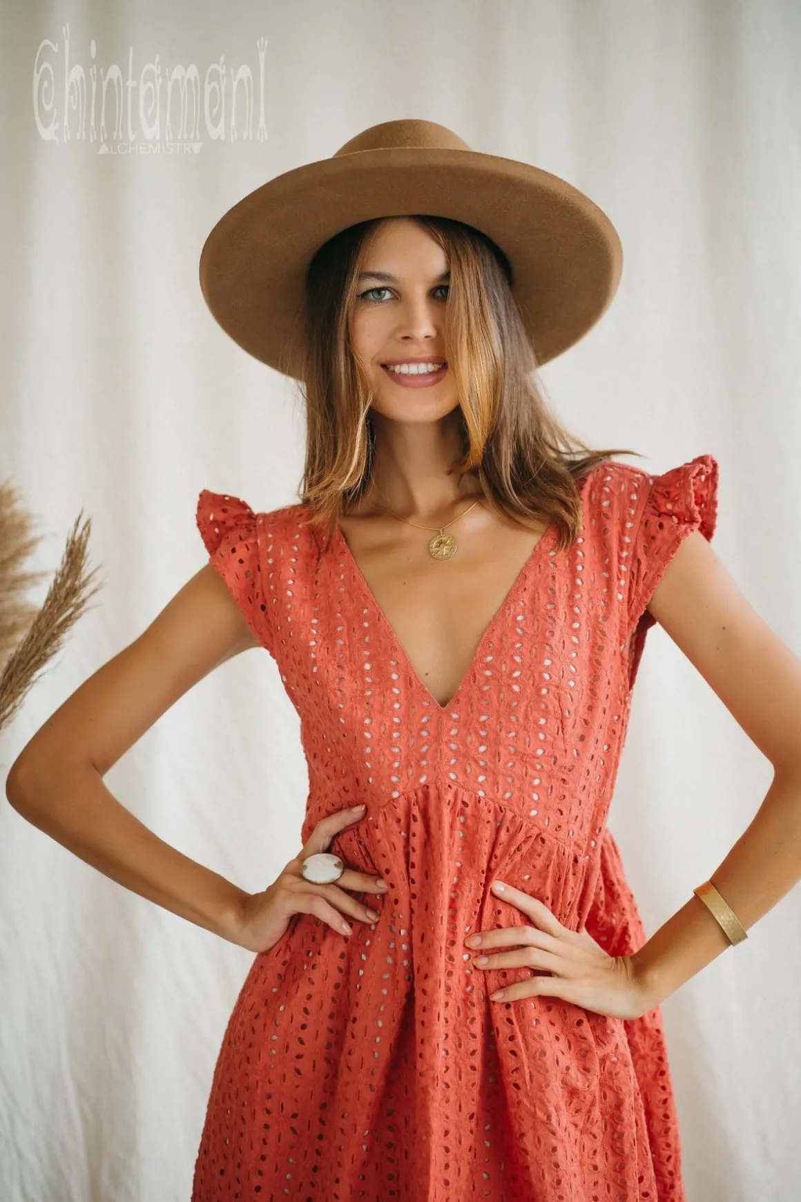 Simply cute – that’s what we can say about this baby doll dress from our broderie anglaise collection. It is made from pure organic cotton with eyelets – traditional European embroidery technique. Broderie anglaise was very popular in Victorian Britain and now makes a gorgeous comeback as a base for romantic dresses. This one is so light and airy, but has a very sophisticated tailored silhouette – with gathered skirt, soft and thin off white cotton underskirt, ruffled short sleeves and an open back with cute shoulder straps. Finish this look with boots and straw hat – and you are ready for a bright morning through French countryside somewhere in Provence!